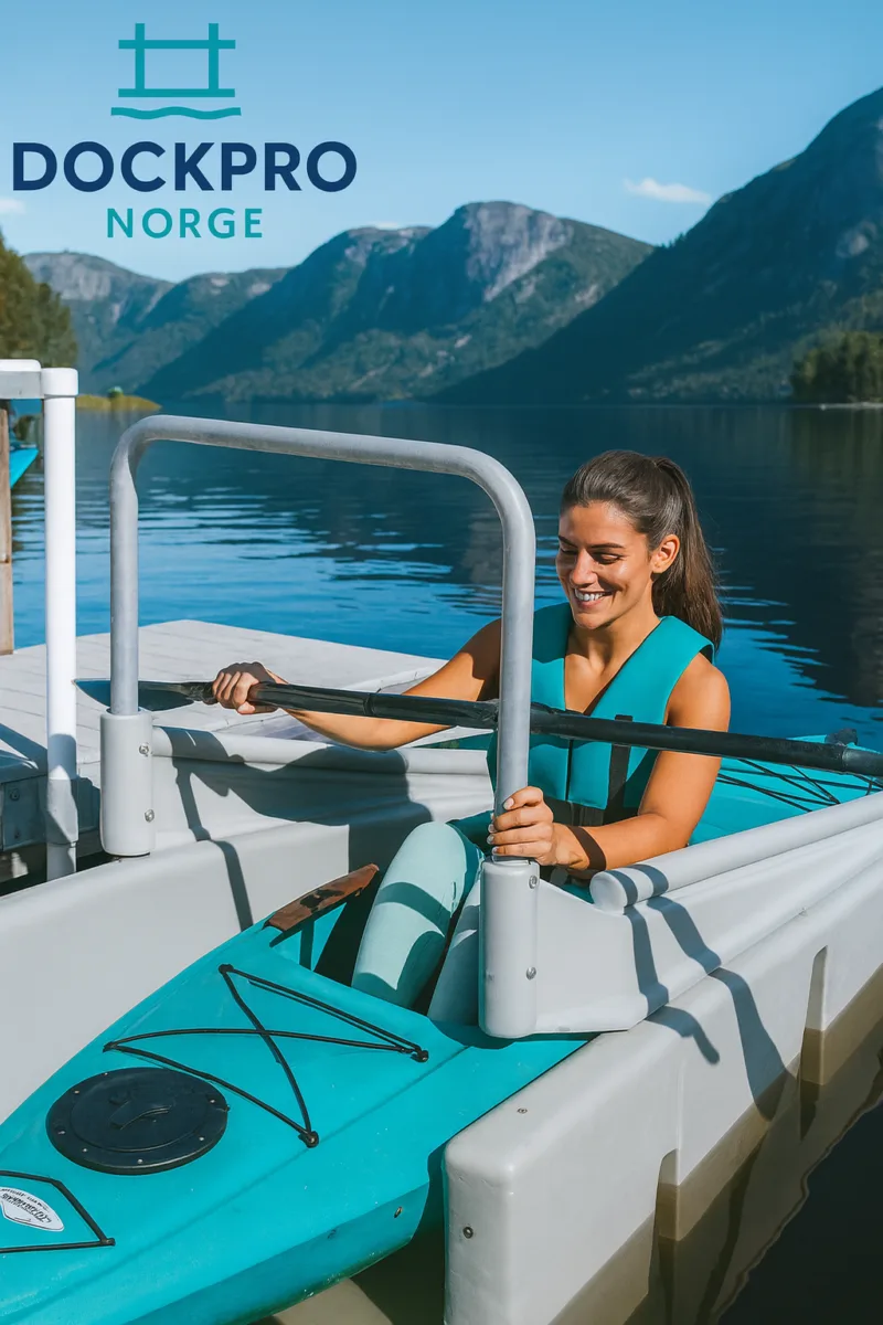 Vår kajakk rampe er spesielt utformet for å gi enkel og stabil ombord- og ilandstigning for alle – og er spesielt tilpasset personer med nedsatt funksjonsevne. Rampen er utstyrt med rekkverk og rustfrie håndtak som gir ekstra støtte og trygghet ved bruk.